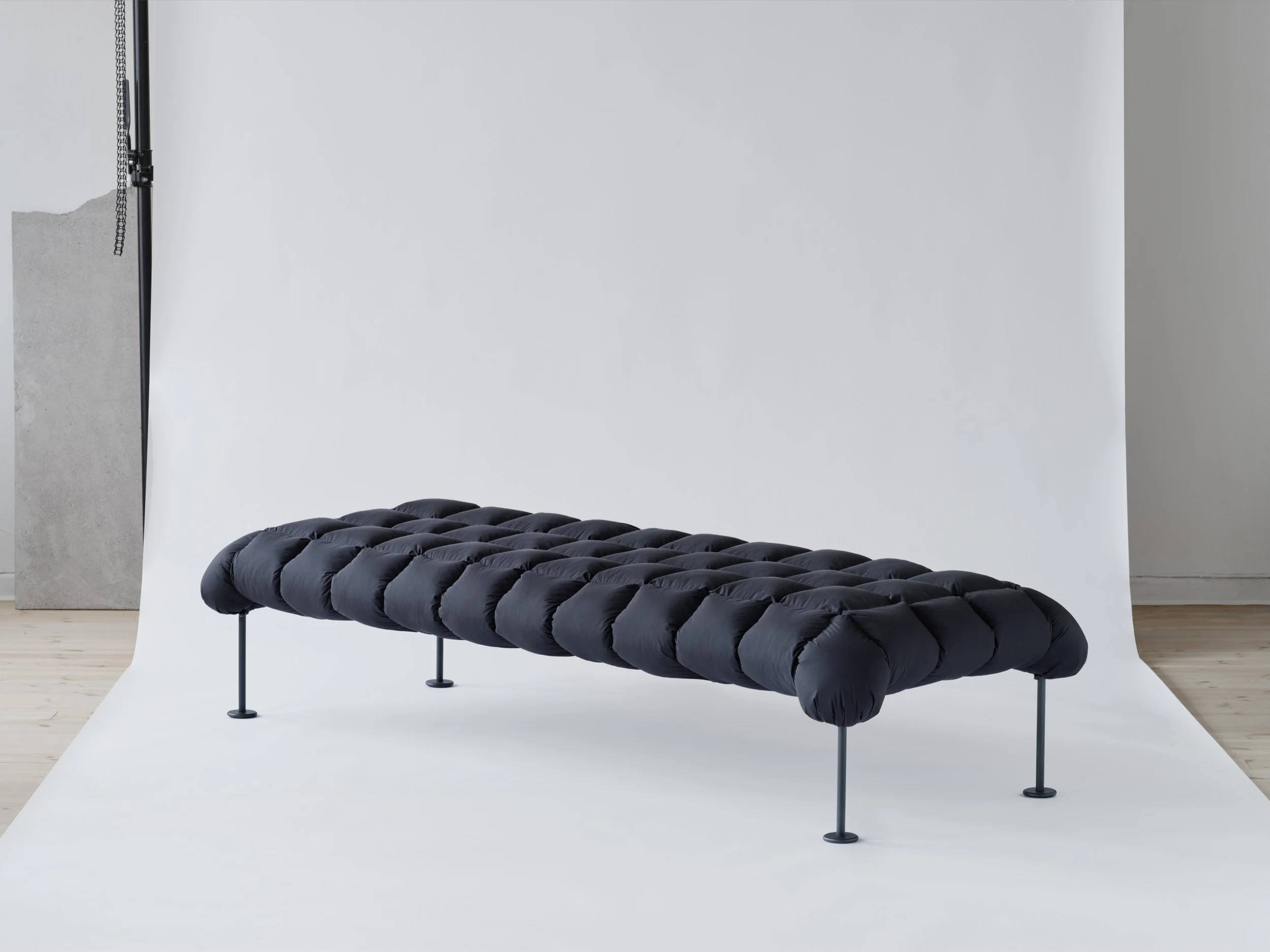 Inspiration hämtades från modevärlden, och material och tekniker påminner om dem hos en dunjacka.
